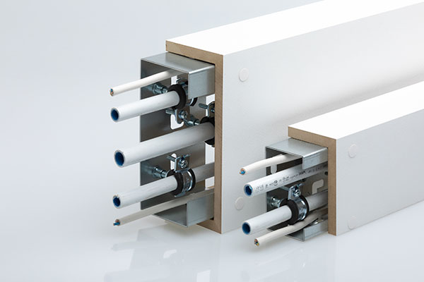 – Kätevän kiinnitysjärjestelmän avulla kiinnitetään sekä putkikannakkeet että kotelointi. Kotelo voidaan toimittaa myös ilman kiinnitysjärjestelmää. Taustasta riippuen kotelo voidaan ruuvata myös edestäpäin pitkillä ruuveilla suoraan seinään.