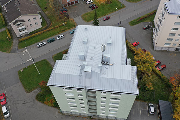 ”Teemme Elinkaarikatolle vähintään kerran vuodessa tarkastuksen, jossa käydään kaikki vesikaton osa-alueet läpi. Tästä tehdään tilaajalle kuvallinen raportti. Samalla tehdään tarvittavat huoltotoimenpiteet. Taloyhtiö tietää katon huoltokustannukset 25 vuodeksi eteenpäin.”