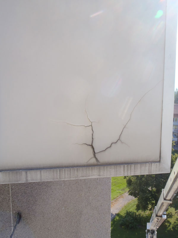 Julkisivuyhdistyksen tekninen toimikunta selvitti tilannetta viime vuonna opinnäytetöin ja julkaisi syksyllä väliaikaisen ohjeistuksen levyrakenteisten kaiteiden suunnitteluun ja tarkastamiseen.