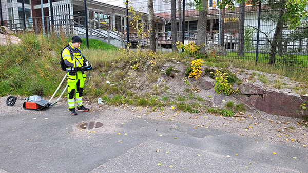 ”Pystymme liikkumaan taloyhtiön piha-alueella jälkiä jättämättä ja melua tuottamatta – tiukoissakin paikoissa, kuten talojen läheisyydessä ja seinänvierustoilla. Tutkimuksemme ei riko pintoja eikä siinä tehdä reikiä. Taloyhtiön ei tarvitse oikeastaan tehdä mitään esivalmisteluja meidän työtämme varten. Suunnittelijan kanssa sovitaan, mistä he tarvitsevat maaperätietoa, ja niissä paikoissa suoritetaan tutkaus”, Geo-Work Oy:n toimitusjohtaja Jukka Clifford kertoo.