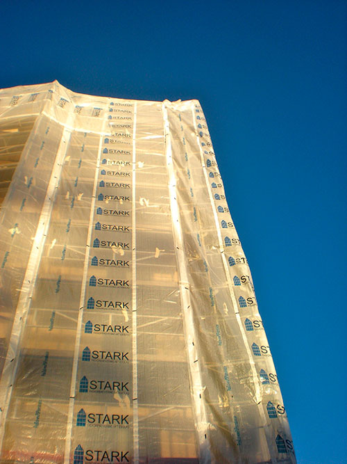 Julkisivukorjauksissa on talvella usein kyse lähinnä vaurioiden hallinnasta ja väliaikaisista suojauksista. Pysyvä korjaus toteutetaan sääolosuhteiden salliessa.