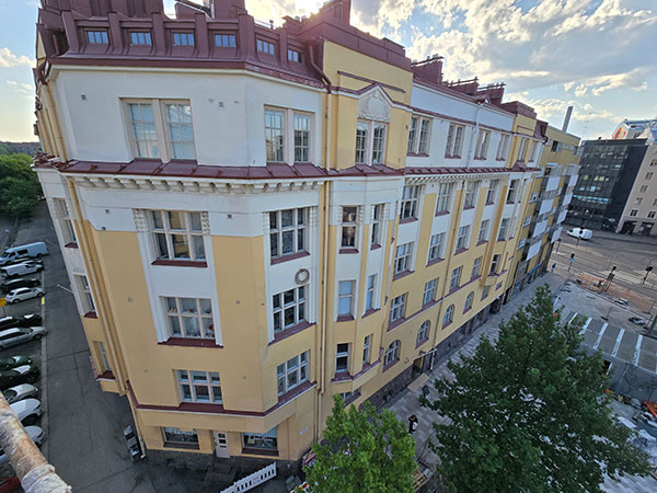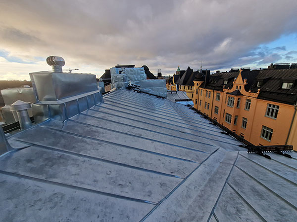 ”Kattojen kohdalla pätee sama kuin julkisivuissa ja ikkunoissa eli kokonaisuus ratkaisee. Materiaalin kunto, rakenteet, tuulettuvuus ja veden kulkureitit kertovat, mitä pitää tehdä ja mikä on vielä täysin toimivaa”, Treuthardt summaa.