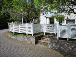 ”Vinyylitalon valikoimasta löytyi helposti kohteisiimme sopivat mallit. Aidat ovat kestäneet hyvin Suomen vaihtelevia sääolosuhteita. Yhtenäiset, siistit, valkoiset aidat antavat kohteista hyvän vaikutelman”, sanoo Metsäpelto.